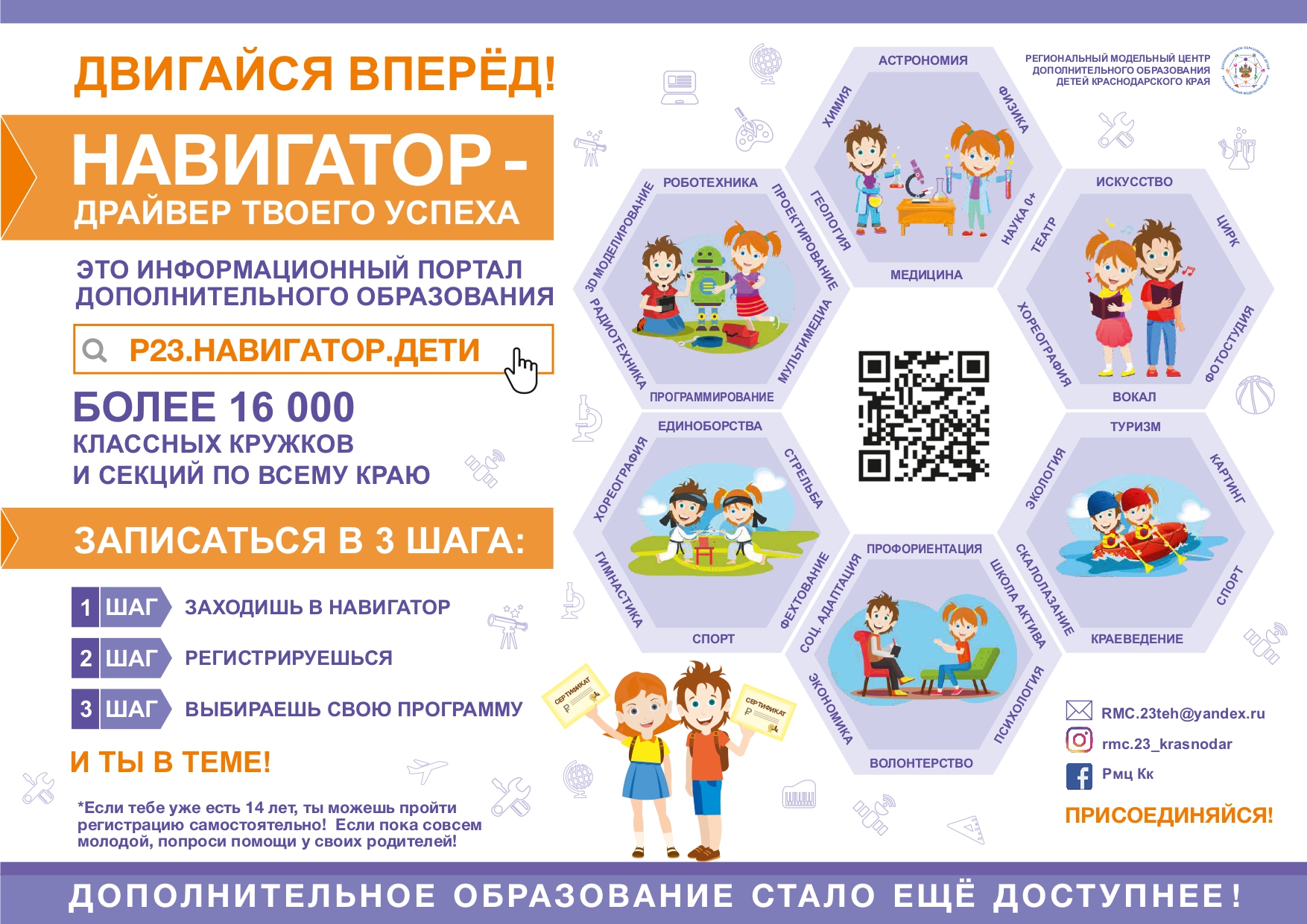 Помогите вашему ребёнку раскрыть таланты! Зарегистрируйтесь в навигаторе дополнительного образования Краснодарского края.